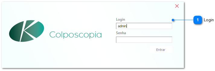 Na tela de login do programa execute os seguintes passos: